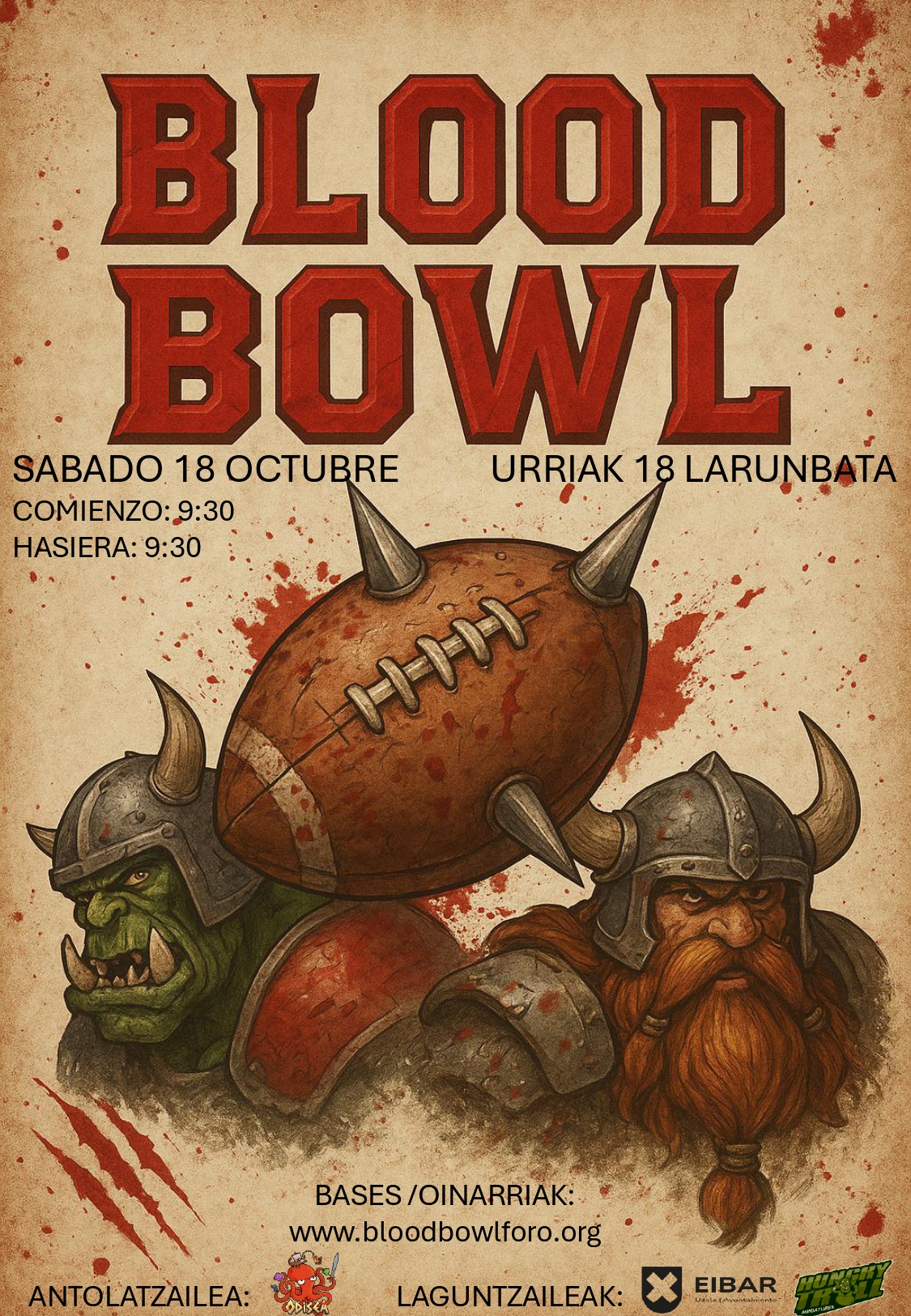 Pase ezinezkoen erregeak, ogro suntsitzaileak, goblin hegalariak eta epaile “distraituak”… denak elkartuko dira Blood Bowl txapelketa zoragarri honetan, non bakarrak jaso ahal izango duen garaipenaren kopa eta Viejo Munduko estratega onena izatearen harrotasuna (edo behintzat, zutik jarraitzen duen bakarra).